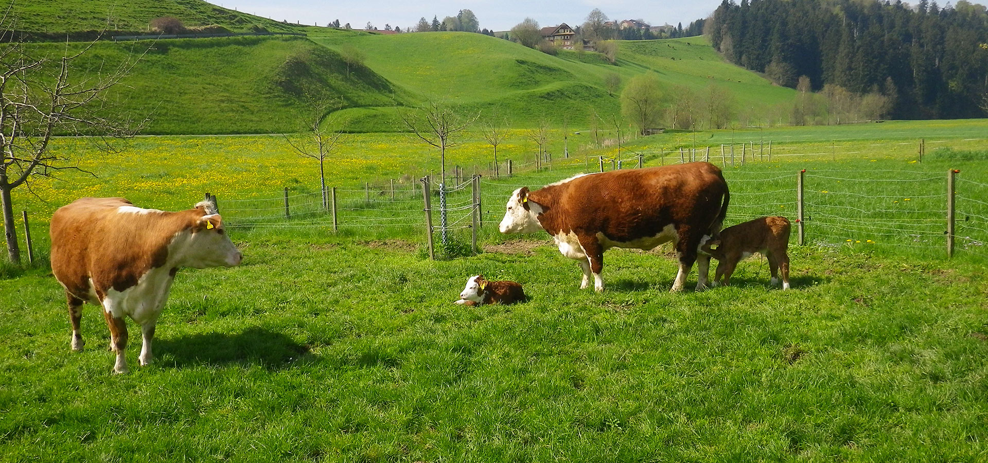 Gras und Heu. Unsere Herde besteht aus rund 11 Kühen mit ihren